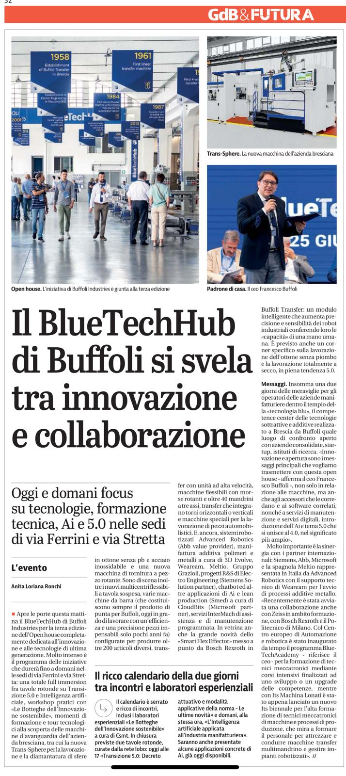 Sul Giornale di Brescia si parla dei BlueTechDays che si sono tenuti nelle giornate dell'8 e 9 maggio presso la sede del BlueTechHub di Via Ferrini.